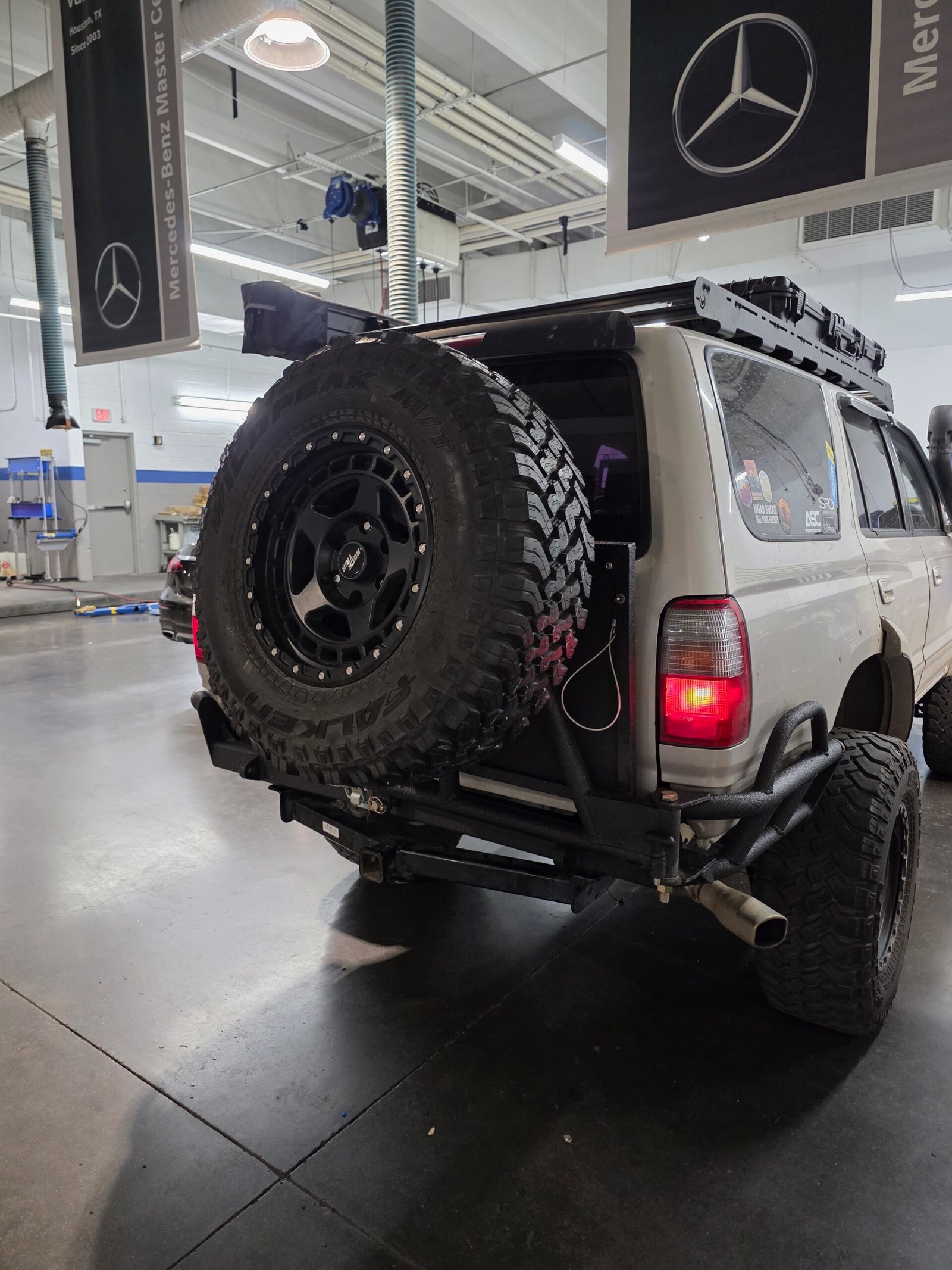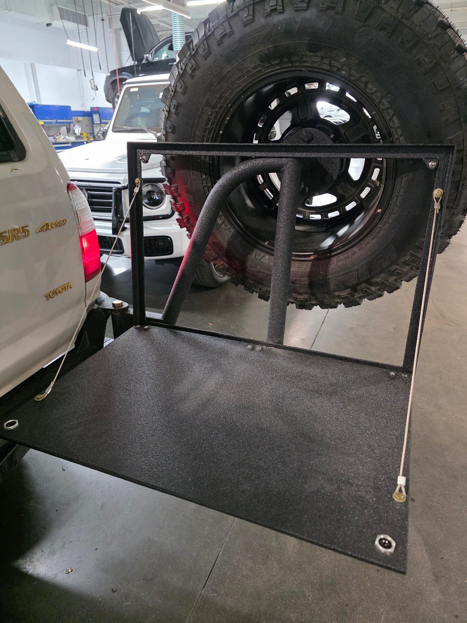 Our swing-out and rear carrier systems are designed to handle oversized tires without flex or rattle. Reinforced hinge assemblies and solid latch mechanisms ensure stability on-road and off.